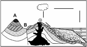 (1)B处地质构造为 ▲ 。A处地貌为 ▲ ,形成该地貌的原因是 ▲ 。