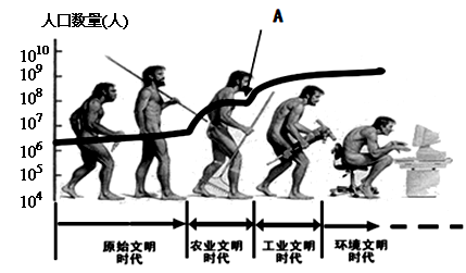 (2)A处人口增长模式的特点是 ▲ 。在人类发展的四个阶段中,地球上环境人口容量最大的是 ▲ 。