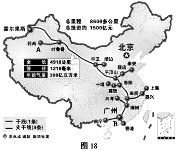 材料一:2008年初,世界最长的跨国天然气管道西气东输二线工程正式开工。该工程外连土库曼斯坦的中亚天然气管道,西起我国霍尔果斯,南至广州、深圳和香港,是世界上最长的跨国天然气管道,将国内外天然气输送到珠江三角洲、长江三角洲,为我国东部地区提供清洁能源,意义重大,影响深远。