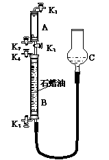 ⑶为验证“同温同压下,相同体积的任何气体都含有相同数目的分子”,该小组同学设计了如第6页右上图所示的装置,图中B管的容积是A管的2倍,活塞K1、K2、K3、K4、K5均关闭(固定装置和尾气处理装置略;HCl和NH3均不溶于石蜡油,也不与之反应;装置气密性好。