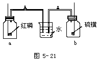 6.如图5-21装置,红磷、硫磺分别在a、b瓶中燃烧,当燃烧结束后同时打开两个夹子,可看到 [ ]