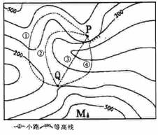 图是“某地地形简图”,M点位于36.5°N。两中学生分别到达P、M点.测量并计算出两点相对高度是288米。读图回答7-9题。