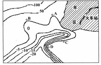 ①A、B两地可否建港?_______________ ,原因是________________________。②C、D两处相比较,选择_______________处建港合理,理由是__________________________________________________________________。