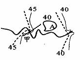 5B 6B A区的数值范围是(35,40),是洼地。甲处等高线有两个弯曲,如果由河道向两侧拉一直线,可以看出甲处是地上河,主要是河水补给潜水(如图)。根据潜水数值也可以得到此结论。
