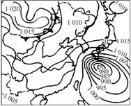 9.读“亚洲部分地区2006年9月5日某时的地面等压线天气图”(单位:百帕),完成下列问题。