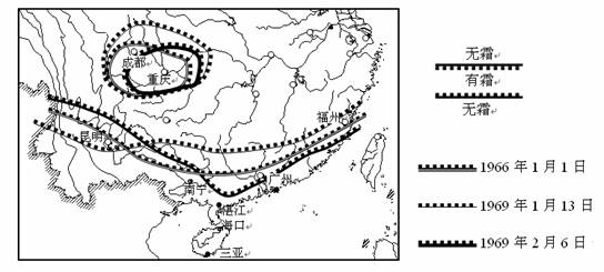 C 1969年1月13日到2月6日,昆明出现霜冻现象比福州早