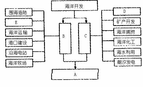 (1)将下列有关内容的数字代号填在相应的空格中:①滨海旅游②海洋经济③海洋资源开发④海洋空间利用⑤海洋盐业