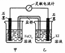 D.电流计读数为零后,在甲中溶入FeCl2固体,乙中石墨电极为负极![]()