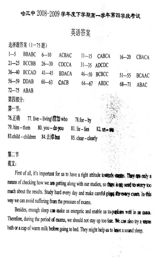 第一节 短文改错(共10小题;每小题1分,满分10分)此题要求改正所给短文中的错误。