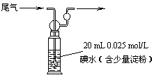 (4)硫酸工业尾气中二氧化硫含量超过0.05%(体积分数)时需要加以处理后才能排放。现用右图所示装置测定尾气中SO2的含量,当通入尾气11.2 L(标准状况下测定)时,碘水恰好褪色。通过计算说明,该尾气能否直接排放(写出计算过程)。 ▲