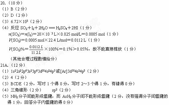 (12分)本题包括A、B两小题,分别对应于“物质结构与性质”和“实验化学”两个选修模块的内容。请选择其中一题,并在相应的答题区域内作答。若两题都做,将按A题评分。
