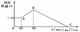 21、把NaOH、MgCl2、AlCl3三种固体组成的混合物溶于足量水后有1.16 g白色沉淀,在所得的悬浊液中逐滴加入1 mol·L-1 HCl溶液,加入HCl溶液的体积V与生成沉淀的质量m的关系如图所示,试回答: