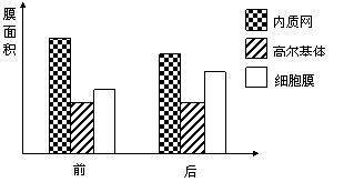 右图是某细胞在进行某生命活动前后几种生物膜面积的变化图,在此变化过程中最可能合成