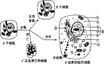 下图表示干细胞的三个发育途径。据图回答下列问题:(9分)