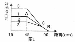 I、某小组用依乐藻进行光合作用的实验,他们将一枝依乐藻浸在加有适宜培养液的大试管中(室温20℃),可观察到光下枝条放出气泡。他们以太阳灯作为光源,移动太阳灯使之与大试管的距离不同,结果如图1中曲线1,请回答: (1)该实验研究的是