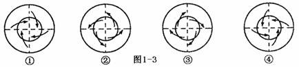 下图(图1-3)中,符合南极大陆极地东风、南半球气旋、我国台风、我国江淮地区的伏旱示意图的顺序是