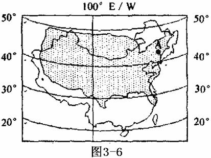 30.美国是当今世界超级大国,中国是现今最具发展潜力的国家,读中美两国地理位置重替对照图3-6(两国比例尺相同),问答下列问题。