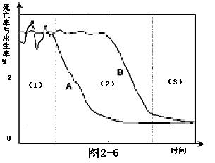 (1)曲线A、B中表示人口出生率的是 。(1分)