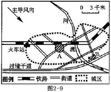 (1)图中A是该市的商业中心,其布局原则是 ;B为该市新建的专业性商品交易市场,其布局原则是 。(4分)