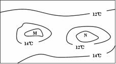 右图为等温线分布图,M地、N地的地形应为