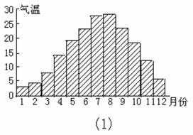 个月中每月的平均气温.图(2)表示某家庭在这年