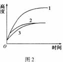 如右图2中曲线1、2、3表示漏斗液面高度随时间的变化情况。则曲线1、2、3与甲、乙、丙三个装置的对应关系应是