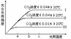 A、光照强度为a时,造成曲线II和III光合作用强度差异的原因是CO2浓度不同