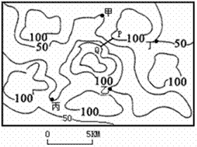 5.图中P--Q两地间有一座桥梁,该桥和其下溪谷的高差最接近 ( )