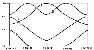 下图中ABCD分别表示不同地区正午太阳高度随四季的变化图,读图回答11-13 题。