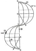 读右图,图中OP、EF为地球公转到近日点附近时的晨昏线,回答19-20题。