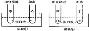 猪笼草是一种食虫植物,为了验证猪笼草分泌液中有蛋白酶,某学生设计了两组实验,如右下图所示。在35℃水浴中保温一段时间后,甲、乙试管中加入适量的双缩脲试剂,丙、丁试管中不加任何试剂,下列实验能达到目的的是
