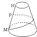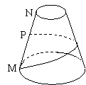 如图, 已知圆台的上、下底面半径分别为1cm , 3cm , 母线长为8cm , P是母线MN的中点, 由M出发, 沿圆台侧面绕一周到达点P, 求经过的最短路程.