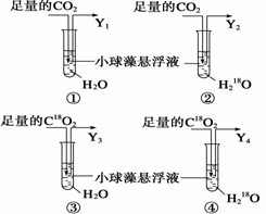 下图表示较强光照且温度相同以及水和小球藻的质量相等的条件下,小球藻进行光合作用的实验示意图。一段时间后,以下相关比较不正确的是( )