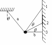 用与竖直方向成θ角的倾斜轻绳a和水平轻绳子b共同固定一个小球,这时绳b的拉力为F1.现在保持小球在原位置不动,使绳子b在原竖直平面内逆时针转过θ角固定,绳b拉力变为F2;再转过θ角固定,绳b拉力变为F3,如图所示,则( )![]()