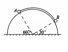 球,系统处于静止状态.A、B小球与圆心的连线分别与水平面成60°和30°角,则两球的质量之比和剪断轻绳时两球的加速度之比分别为( )![]()