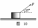 15、(10分)如图10所示,质量m = 2kg 的物体静止在水平地面上,物体与地面间的动摩擦因数μ = 0.75。一个与水平方向成 37°角斜向上、大小F = 20N 的力拉物体,