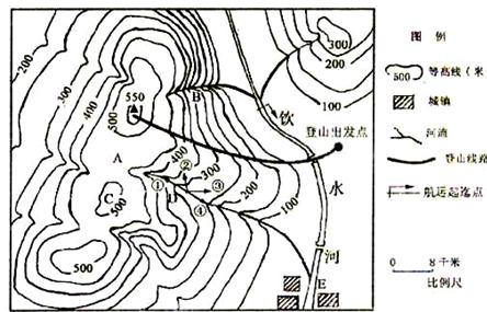 (2)同学们把夜晚宿营地点选在图中A处,从图中提供的信息简述理由。(2分)