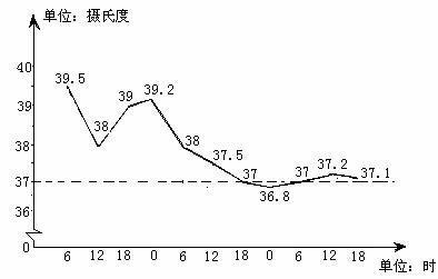 7.下面是一个病人的体温记录折线图,回答下列问题: