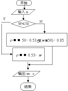 [解析]为了计算行李的托运费用,应先判断行李的重量是否大于50Kg,然后再选用相应的公式进行计算。其算法为: