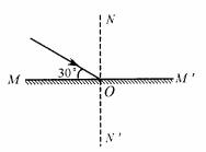 (09成都)如图所示,一细光束射到平面镜MM'的O点处,请根据光的反射规律画出它的反射光线,标明反射角大小。