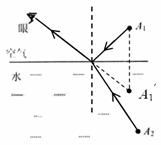 (1)A1发出的光经水面反射进入人眼的光路图