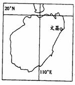 海南航天发射场,2009年9月14日在海南省文昌市动工建设,预计将于2013年完工并投入使用。结合地图,回答11-12题