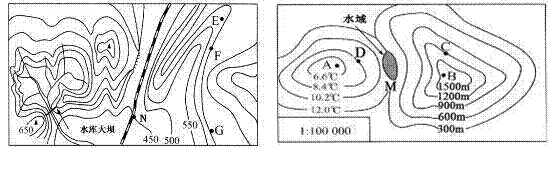 下图是某地附近两区域等值线分布图(比例尺相同),读图回答13-14题