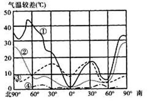 A、正午太阳高度差异 B、地形差异 C、大气环流的差异 D、白昼时间的差异