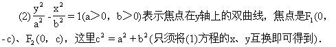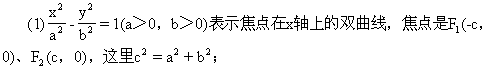 设M(x,y)为双曲线上任意一点,双曲线的焦距是2c(c>0),那么F1、F2的坐标分别是(-c,0)、(c,0).又设点M与F1、F2的距离的差的绝对值等于常数.