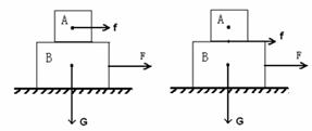 摩擦力f和B物体所受重力G的示意图 (其中G>f)。