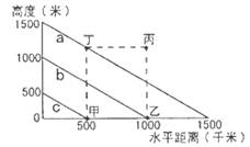 右图中a、b、c表示“北半球某区域(理想模式)一月份等值线(面)图”,甲处附近有大气降水,读图完成6-7题: