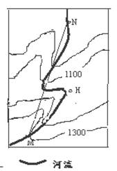 10.上右为沿左图中M N所作的地形剖面图,其中正确的是: