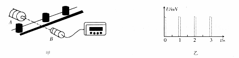 6.利用光敏电阻制作的光传感器,记录了传送带上工件的输送情况,如图甲所示为某工厂成品包装车间的光传感记录器,光传感器B能接收到发光元件A发出的光,每当工件挡住A发出的光时,光传感器就输出一个电信号,并在屏幕上显示出电信号与时间的关系,如图乙所示。若传送带始终匀速运动,每两个工件间的距离为0.2m,则下述说法正确的是( )