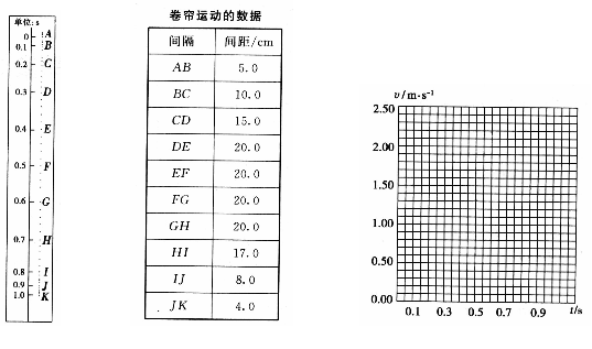 (1)请根据所提供的纸带和数据,在图c中绘出卷帘窗运动的v-t图线.